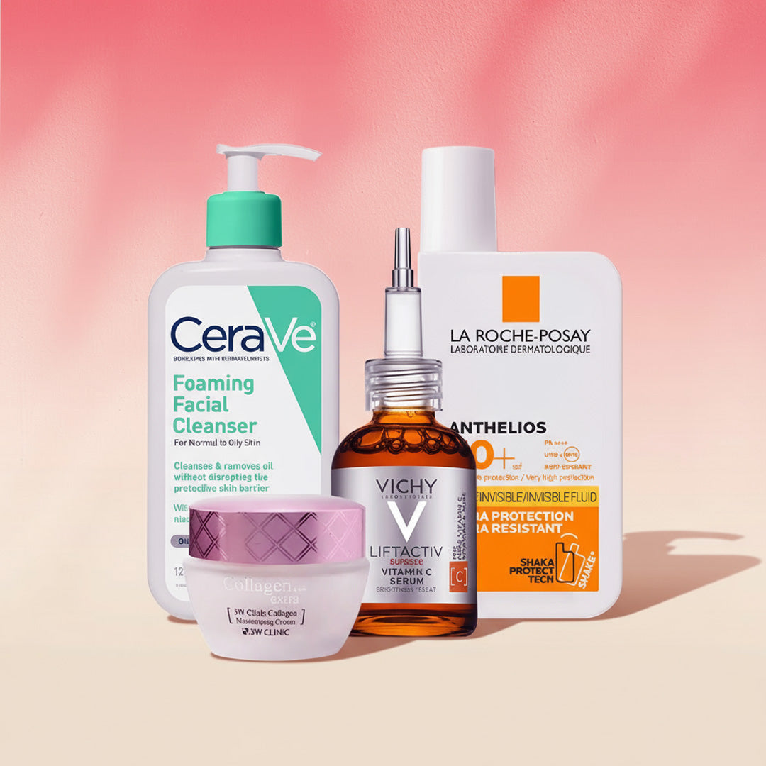 احصلي على بشرة نظيفة ومشرقة ومحمية جيدًا مع هذا الروتين المُستوحى من أطباء الجلدية. تجمع هذه الباقة المكونة من أربع خطوات بين التنظيف اللطيف، والعناية المركزة بالفيتامينات، والترطيب الخفيف، والحماية المتقدمة من الشمس، مما يجعلها مثالية للاستخدام اليومي ومناسبة لجميع أنواع البشرة.