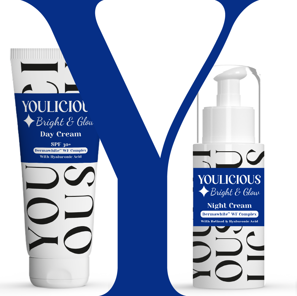 كريم Youlicious Bright & Glow الليلي بتركيبة متقدمة من Dermawhite™ WF complex لتفتيح البشرة وتوحيد لونها وترطيب وتنعيم ملمسها وتقليل التجاعيد والخطوط الدقيقة. كريم Youlicious Bright & Glow النهاري بعامل حماية من الشمس 30 هو تركيبة متقدمة مع مركب Dermawhite™ WF لتفتيح البشرة وتوحيد لونها وترطيب وتنعيم ملمسها وتقليل التجاعيد والخطوط الدقيقة.