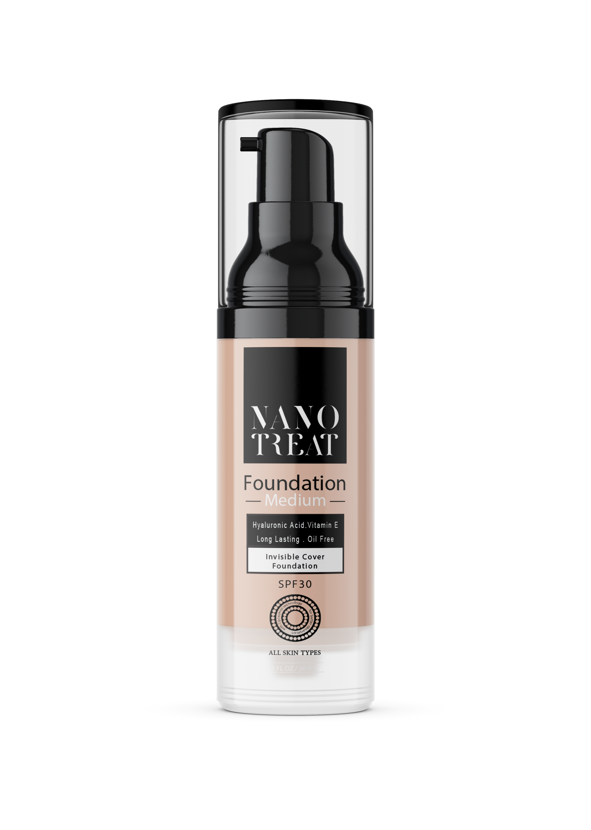 Apply foundation onto skin and blend with fingertips, foundation brush, or makeup sponge